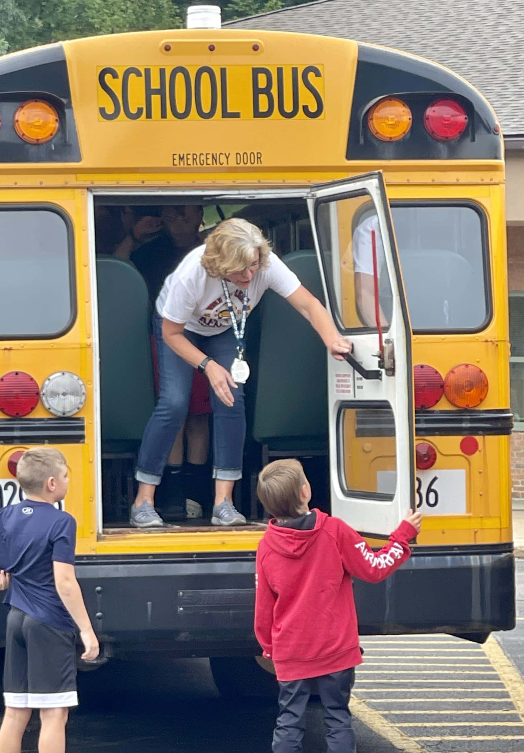 During the bus evacuation drills, students and bus drivers practiced three types of evacuation drills: exiting the back of the bus and exiting the front of the bus; half of the students exiting through the back door and the other half exiting via the front; and quickly moving to a place of safety 100 feet from the bus.