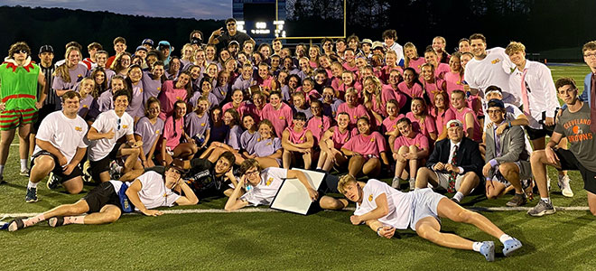 Under a spectacular sky on a perfect spring night on May 13, the juniors and seniors began the celebration of the end of the 2021-22 school year with the annual powderpuff football game on Lozick Field in Lion Stadium.