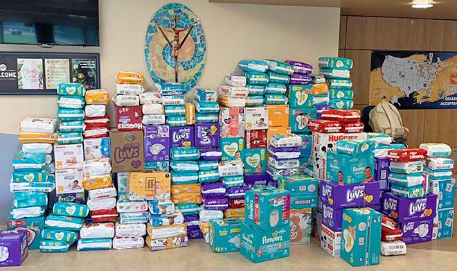 Thanks to the initiative and leadership of junior Victoria Baioni during exam week, the NDCL community collected a mountain of diapers for mothers and babies in need.