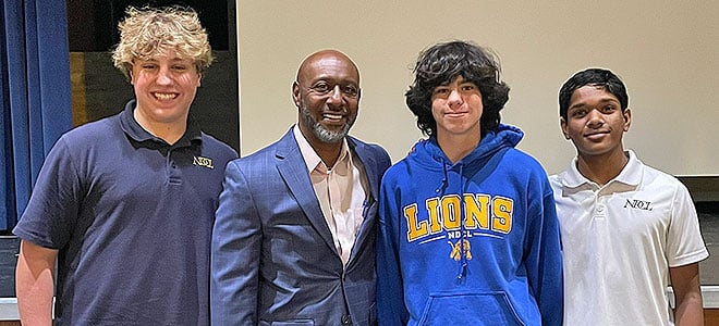 Last week ESPN Vice President Dwayne Bray visited NDCL to discuss his award-winning career in sports journalism with interested students during a special Lion Time gathering.