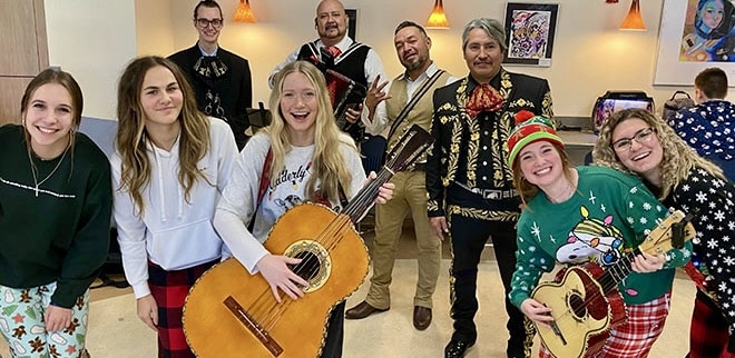 Students and staff celebrated in anticipation of the Feast of Our Lady of Guadalupe on Dec. 12 by singing and dancing to the lively music of a professional mariachi band during all lunch blocks on Dec, 9.