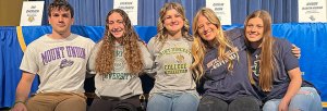 During a signing ceremony on May 3 attended by many relatives, coaches and others in the O’Brien Center, five seniors declared their collegiate athletic intentions: