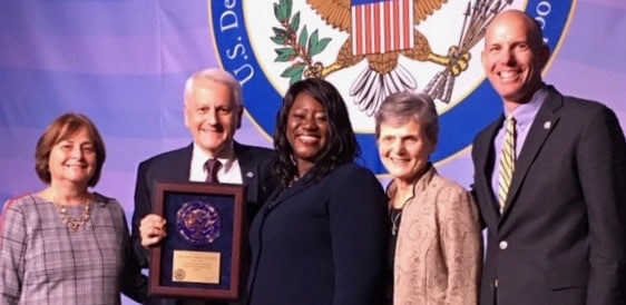 NDCL received the National Blue Ribbon Award on November 8 in Washington, DC. President Dr. Michael Bates, Principal Joseph A. Waler, former President Sr. Jacquelyn Gusdane, and Science Department Chair Maureen Wahl accepted the award from Aba Kumi, Director of Blue Ribbon Schools Program. NDCL is the only high school in the entire state of Ohio to win the Blue Ribbon Award this year.
