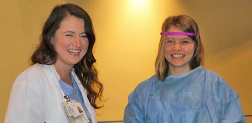 Notre Dame-Cathedral Latin School junior Nicole Grosel gets a glimpse of the work — and attire — of a surgical nurse from Megan Lynch RN '11 during the medical session of Career Week.
