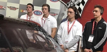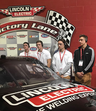 Here seniors Jack Mamone, Steve Dailey, Kyle Medves and Brandon Susel listen to a presentation about the technology that supports and propels Lincoln Electric as the world leader in arc welding, robotic welding systems, plasma and oxyfuel cutting equipment and brazing and soldering alloys.