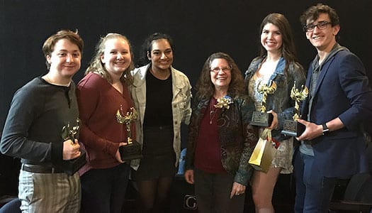 Seniors Tad Brennan and Meena Chauhan and juniors Dan Fogarty and Caitlin Spicer earned the Technical Achievement Award for “Singin’ the Rain’s” silent film feature.