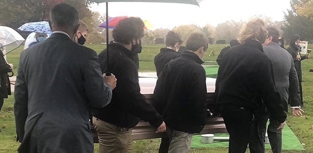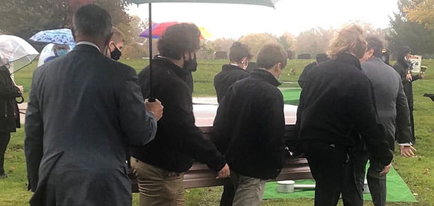 Dominick explained that students usually do more than carry the casket at the cemetery. Often, they participate in the funeral Mass and join in the graveside prayer service.