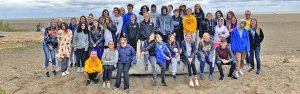 Groups of students scoured the beach to collect and catalogue thousands of pieces of trash and other debris, including a car bumper, washed ashore during the previous night’s storm. The group consisting of seniors Racheal Ina and Natalie Kresic and freshmen Olivia Lewis and Luke Nedved won the top award for the most trash collected.