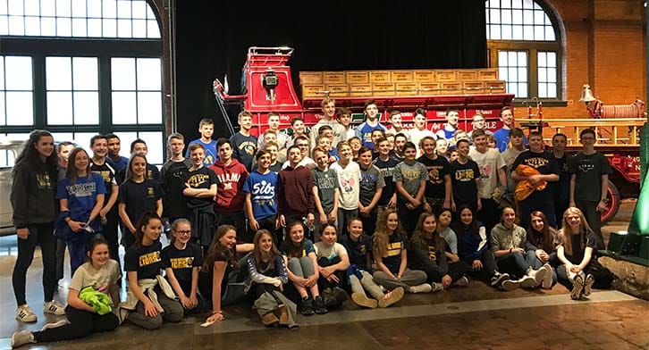 Seventh-graders set out on their daylong tour of Pittsburgh last week. In addition to the Just Ducky Tour, students began their day with a visit to University of Pittsburgh’s Cathedral of Learning and a tour of the Nationality Room. Afterwards, students explored the Science Center and Sports Works and spent some time at the Heinz History Museum. The full day concluded with dinner at the Hard Rock Cafe.