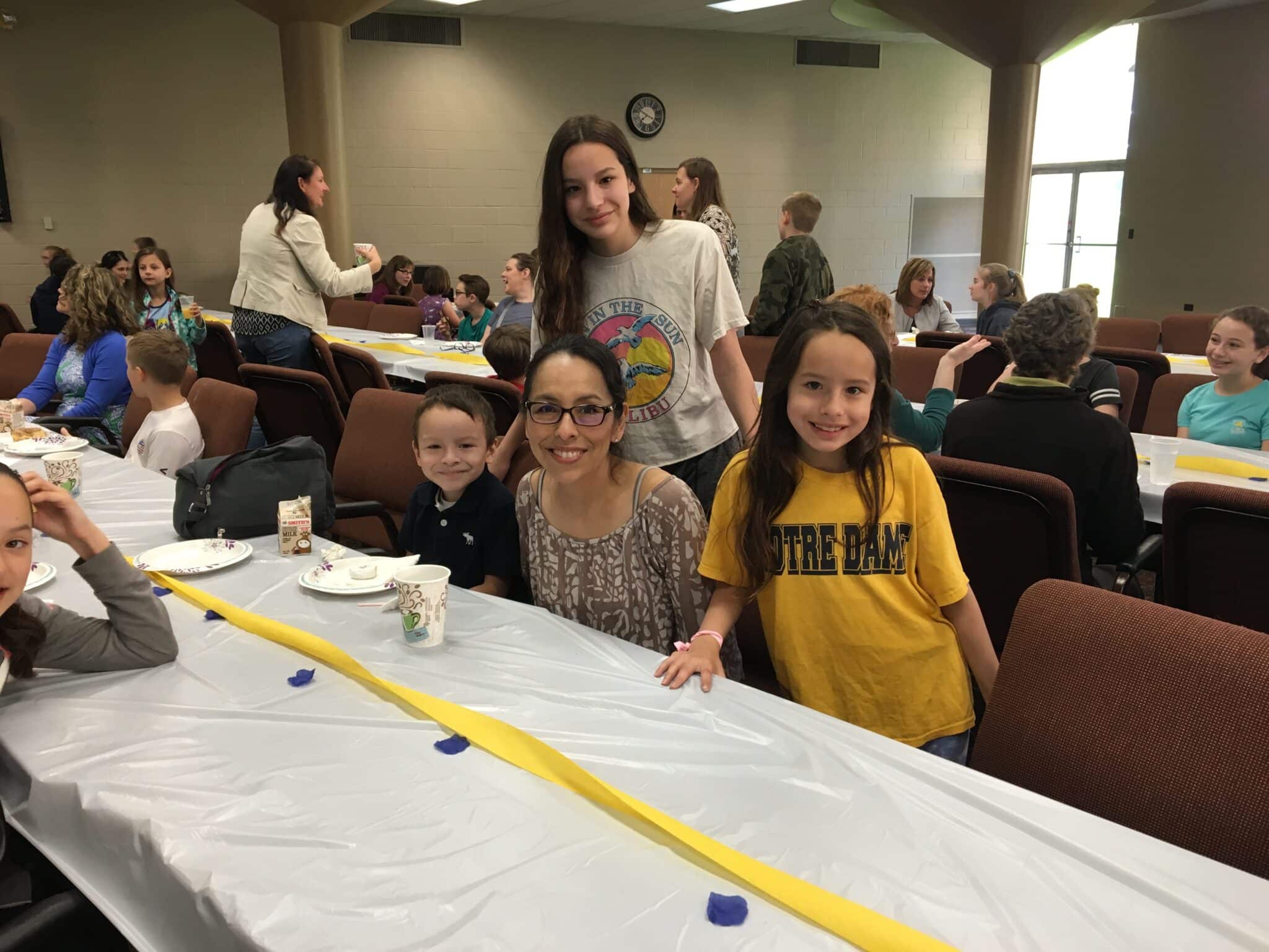 On May 15, moms and children gathered in the auditorium for Morning with Mom. The annual tradition featured scrumptious donuts, hot coffee, delicious juice, exciting games and prizes with the most important highlight, special time with mom.