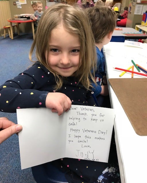 Students in Mrs. Montague and Mrs. DeRespiris’ enrichment classes have been busy making cards for our veterans. Students dictated the words on the cards and then wrote their names and illustrated the cards. They will be sending the cards to the men and women at the Louis Stokes VA Hospital in Cleveland. The words of encouragement and beautiful drawings are sure to make someone’s day on Veterans Day.