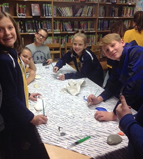 Fifth-grade students were inspired by Patricia MacLachlan’s book, “Edward’s Eyes.” Guided by Mrs. Sabrina Mysyk, students learned about giving to others and the importance of small acts of kindness. They painted rocks and will be spreading their words of encouragement all across Ohio.