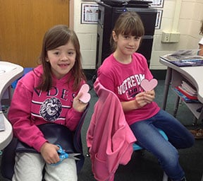 Third-graders also partnered with Cornerstone of Hope, a center for grieving children, teens and adults. Several times a year the bereaved have opportunity to release a butterfly in memory of their loved one. Students in both third-grade classes put together goodie bags and attached a butterfly cutout to each bag. Students also wrote thoughtful messages on beautiful hearts.