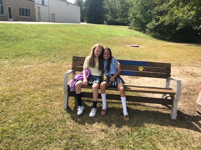 Students can now enjoy using buddy benches to spend time with friends new and old, taking a moment to relax. The benches were purchased by the Notre Dame Parent Association and were assembled with the help of the Paglia, Effner and Felice families. The school is thankful for these wonderful benches that help to foster friendship on campus.