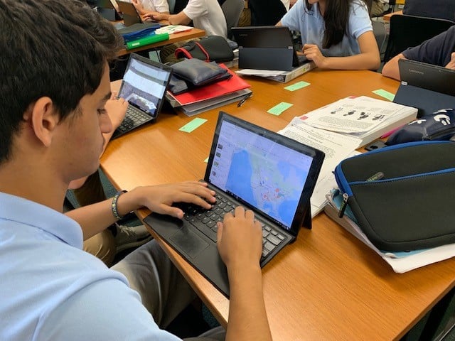 Eighth-graders utilized online technology to immerse themselves in the study of geographic information systems. Students worked with map layers from the ArcGIS living atlas database, analyzing data for possible relationships. Through inquiry learning, students searched for and analyzed data relevant to their questions and personal interests.