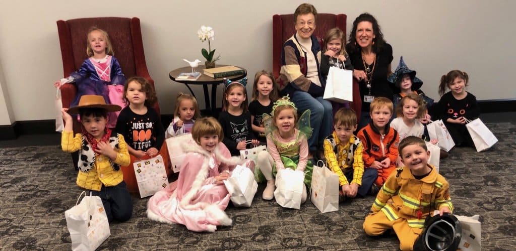 It has been a special week for the preschool and kindergarten students as they spent time with the Sisters of Notre Dame and the residents of Notre Dame Village. The children spread some Halloween cheer as they played games, shared in crafts, sang songs and trick-or-treated through the halls.