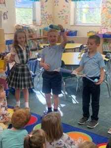 The second-grade students in NDES’ Challenge Program have been enriching their reading, writing, creativity and public speaking skills by participating in an ELA unit called Fraidy Zoo. The students read the story for comprehension and then retold the story in their own words to the preschool students.