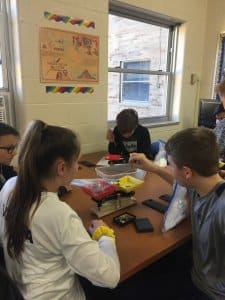 Using balance weights and scales from STEM class, the children collaborated in groups to measure and weigh their “mummies.” They will then use empirical evidence to record findings and changes every two weeks. They are also comparing the experience with how effective the procedure was in ancient Egyptian times.