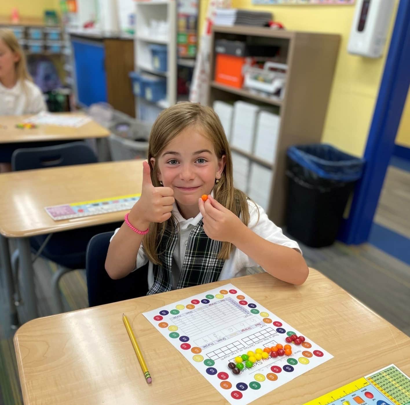 Mrs. Montague’s second-graders learned to represent data on a graph using one of their favorite treats – Skittles. They had so much fun counting, sorting and graphing. Students used a data set to take apart and compare problems with the bar graph.
