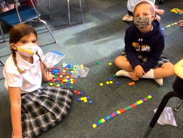 Fourth-graders enjoyed multiplying using the commutative property and finding the factors of numbers from 1 to 100. They discovered how to determine factors. Students found all the factor pairs using tiles. Then, they learned how to identify a prime number. They are working well together and growing as a community of learners.