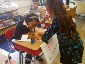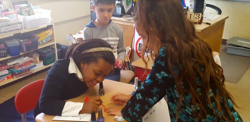 During the month, the students earned Newbury “bucks” to spend at their Market Day. Some of the service stands that students set up on Service Street were to give manicures, hairdos, tattoos and massages. The Goods Avenue stores sold cupcakes, cookies, paper airplanes, books and origami.