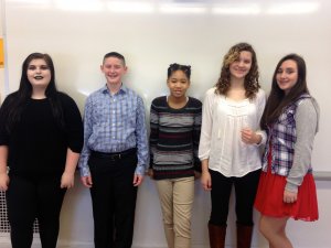 Six Newbury Junior High School students performed in the 2017 OMEA District VII Solo and Ensemble on April 8 at Memorial Junior High School in South Euclid. They are eighth-graders Anita Sarkisian, Greg Bullis and Elsa Morton and seventh-graders Autumn Airey and Maria Clarke.