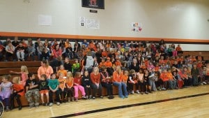 Newbury Elementary School held its second annual Homecoming/Spirit Week pep rally on Oct. 21. The band led students into the gym where they listened to the band play and cheerleaders cheer. Then, Mr. Chaffee, the high school principal, introduced the senior fall sports players.