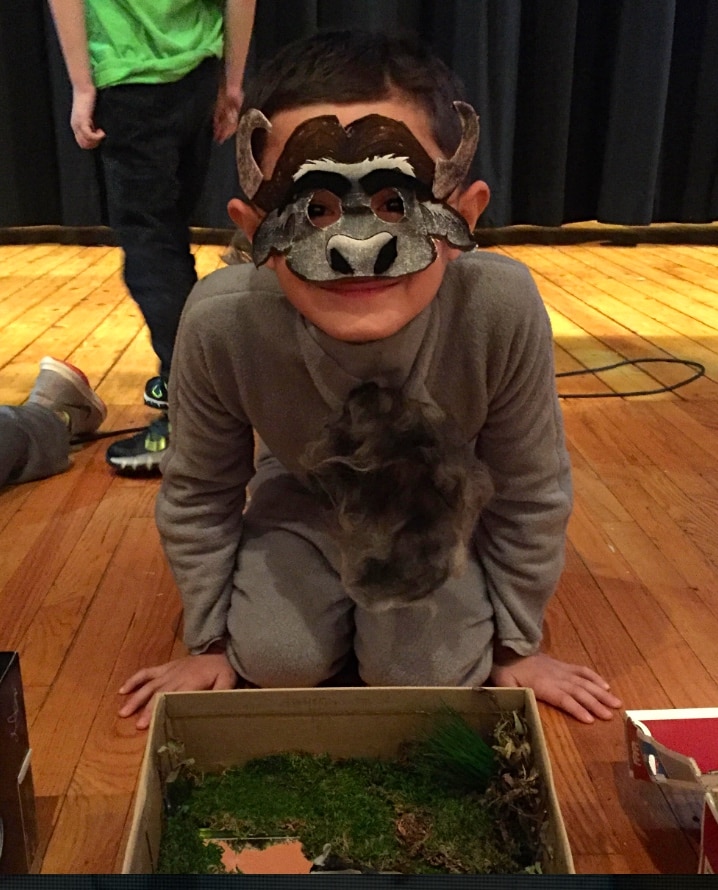 In the meantime, they created leaf artwork for their animal in art class, wrote a song about their animals to the tune of “Wheels on the Bus,” which they practiced singing in music class along with instruments, and made masks of their animals in science class.