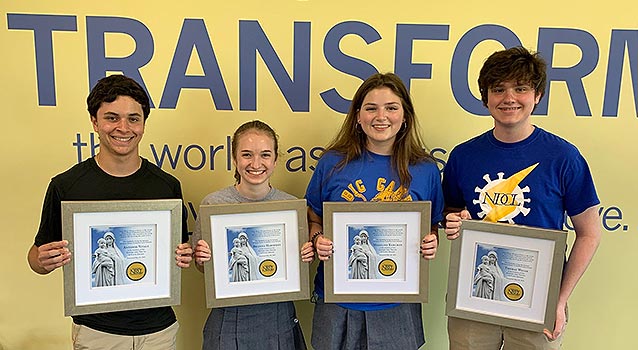 Seniors Evan Fonash, Meghan Hren, Jack Legath and Rylee Yackin received the Living the Truth Awards for the Class of 2021 during the Senior Honors Ceremony earlier this month.