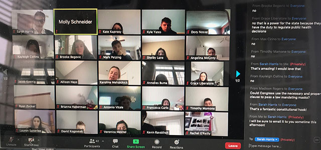 She had previously arranged for her College Credit Plus Government classes to participate in an online scholar exchange with experts from the National Constitution Center. With school closed for the day, she was faced with the choice of canceling the exchange or giving students the option of participating from home. She decided to go ahead with the program and see if anybody showed up.