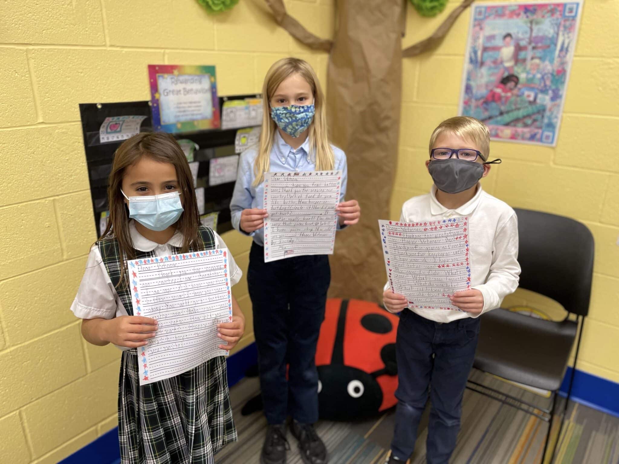 The second-grade classes were busy preparing letters for the veterans at the Louis Stokes VA Medical Center in Cleveland. The children wrote a rough draft and then received individual help from Mrs. Montague and Mrs. Ball through the editing process. The end results were beautifully written and heartwarming letters to veterans.
