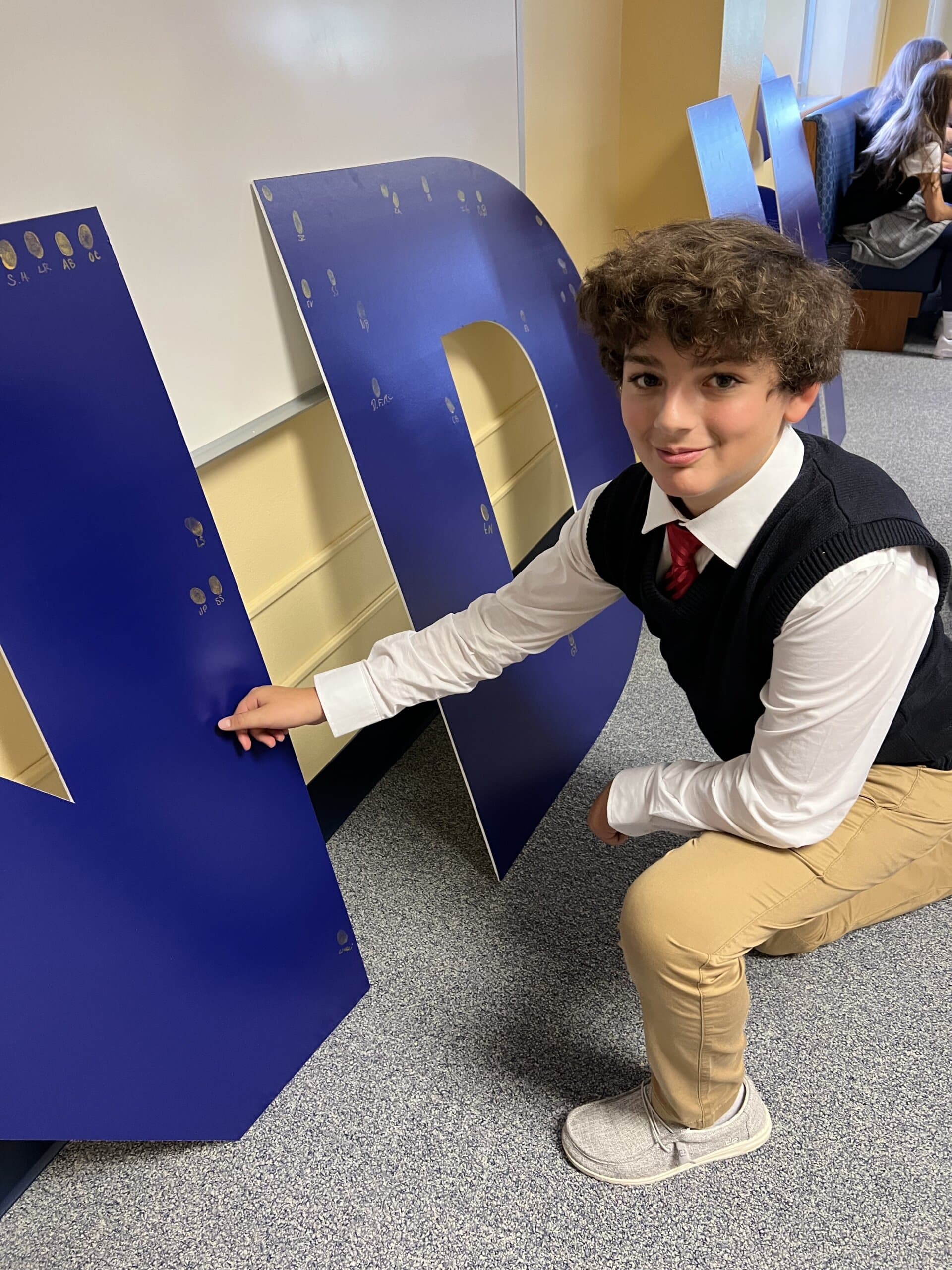Notre Dame Middle School is off to a great start. Students in grades kindergarten through fifth-grade clapped in the new middle school students into their new middle school space. Everyone was delighted to have some of the Sisters of Notre Dame join for the ribbon cutting. The Notre Dame Parent Association also provided cake to the middle school students to celebrate. The students put their thumbprints on giant NDMS letters as a reminder they are the first students to attend Notre Dame Middle School.