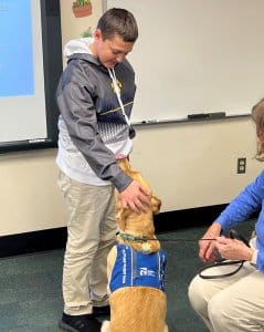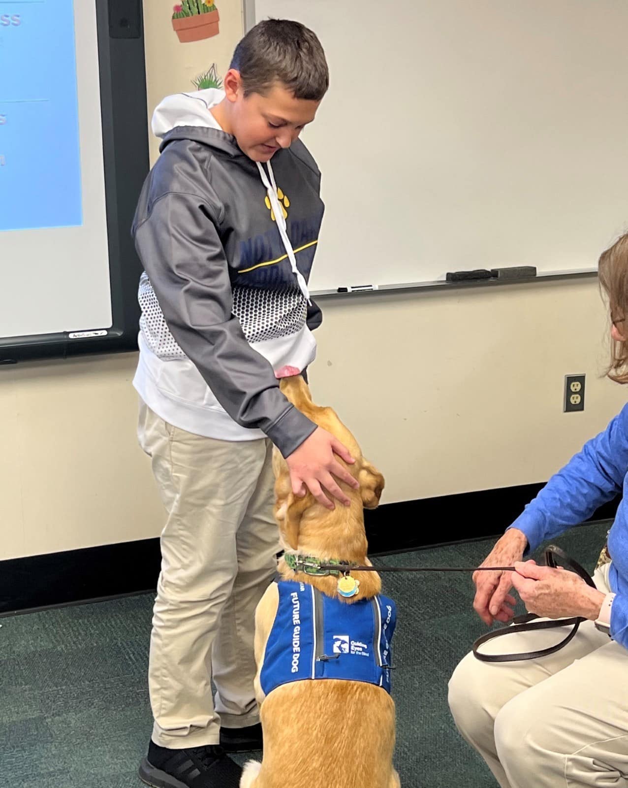 Students learned about the training process, including how to greet a future guide dog in a manner that reinforces patience. They also witnessed how Gadget loves to play “fetch” when he’s not in training. We are so thankful for the work done by the staff at Guiding Eyes for the Blind to give the gift of companionship and joy to those with vision loss.