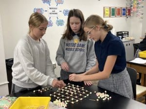 The sixth-grade STEM classes used toothpicks and marshmallows to build a rectangular or square pyramid. In addition, students are testing small slices of apples in various substances to see which preserves the apple slice the best. Once they decide on the best mixture, they will be making mummified apple heads. The two challenges go along nicely with their study of Ancient Egypt.