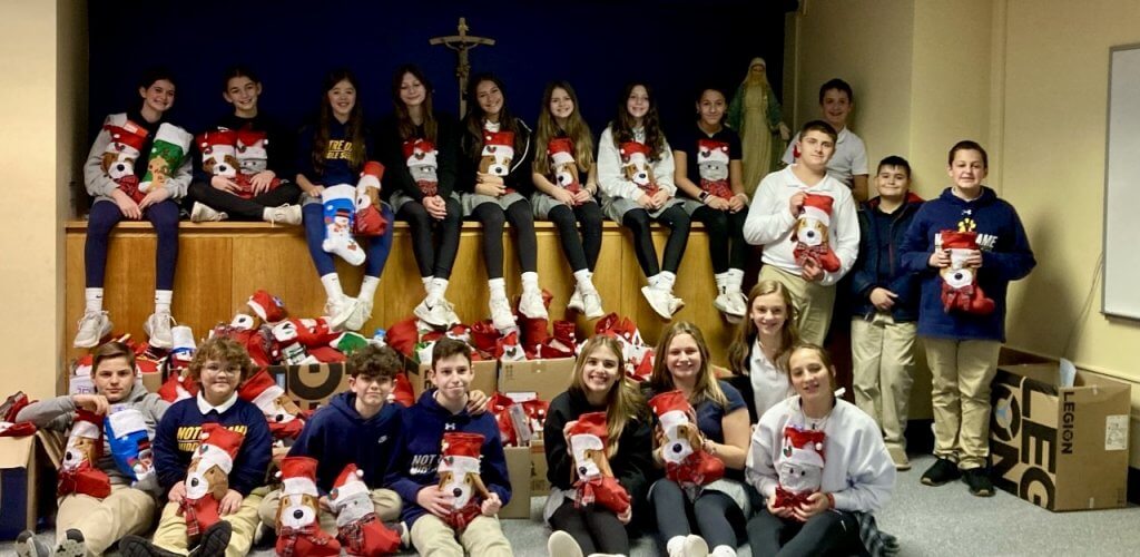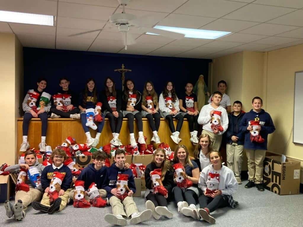 As Notre Dame Lions, the core value of community was shown the past few weeks in the school’s Stockings for Soldiers service project. Working alongside DeJohn Funeral Homes, students in grades K-5 donated over 2,200 items.