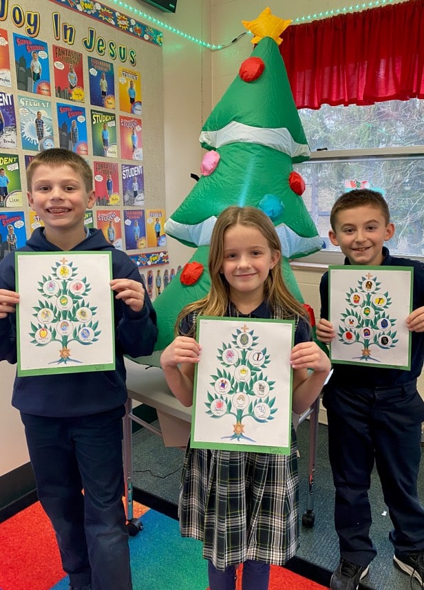 The third grade started off Advent by making Jesse trees. Just like the Christmas tree, the Jesse tree has decorations, but instead of having stars and lights on it, it has promises that God made to His people. The tree is named after Jesse, the father of David, the great king of Israel.