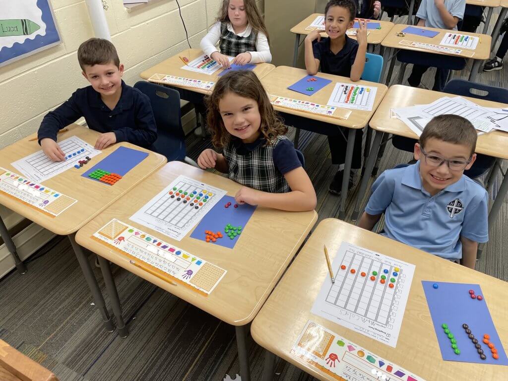 Second-graders in Mrs. Montague’s class are learning all about recording and interpreting data. In order to sprinkle in a bit of fun, they sorted and graphed M&M’s. Students learned how to read their graphs and understand their results. They were also able to do partner work and tried to solve questions on other students’ graphs. It was a “sweet” way to meet the Measurement and Data Ohio state-standard.