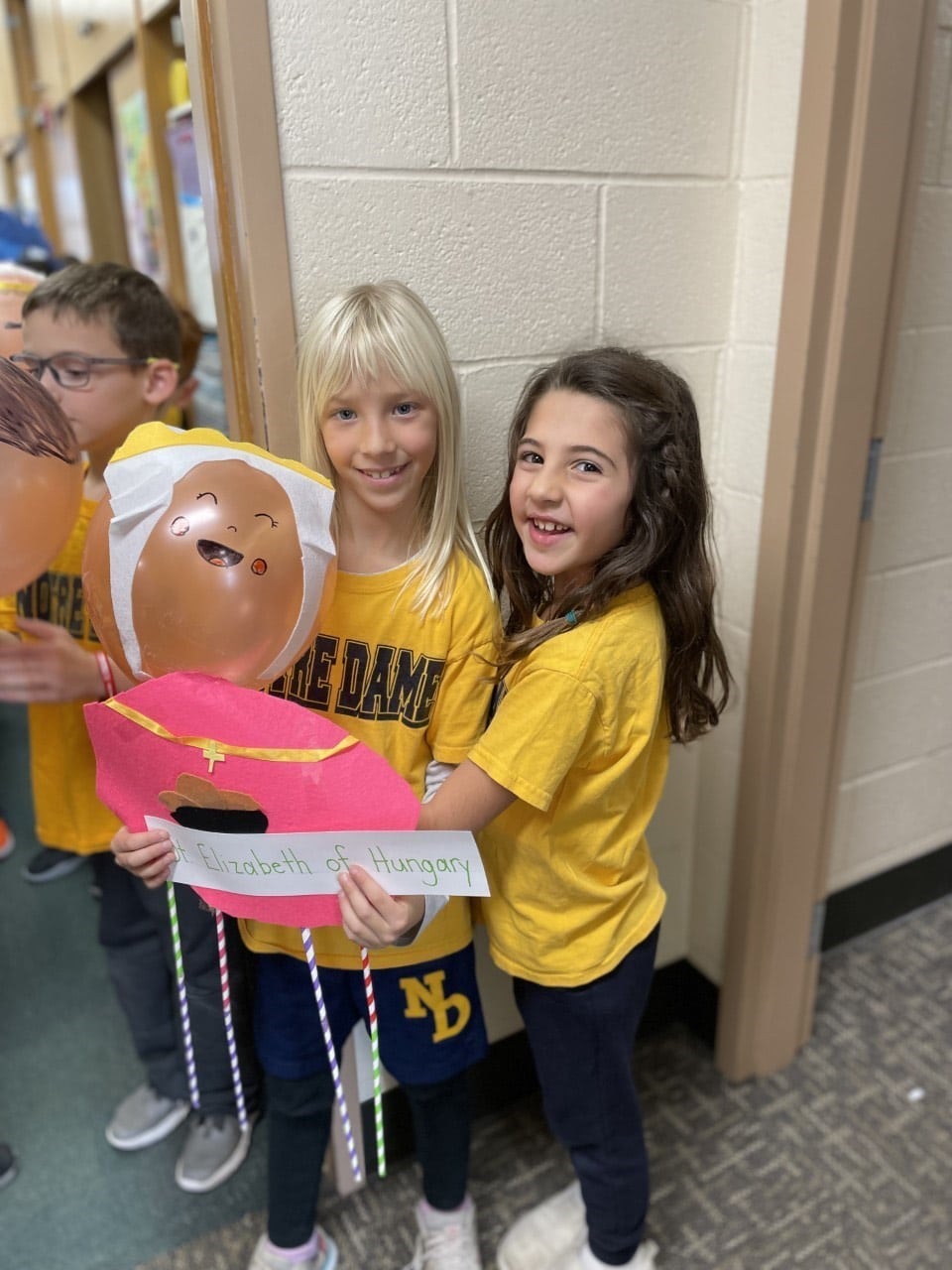 First- and second-grade students were given a big STEM challenge. They had to design a balloon and a device that would hold their balloon up in the air for people to see. Second-graders were given the challenge of working with partners to design a saint balloon based on a saint from the Shining Dolls website. First-graders were given a chance to design a balloon of their choice on their own.
