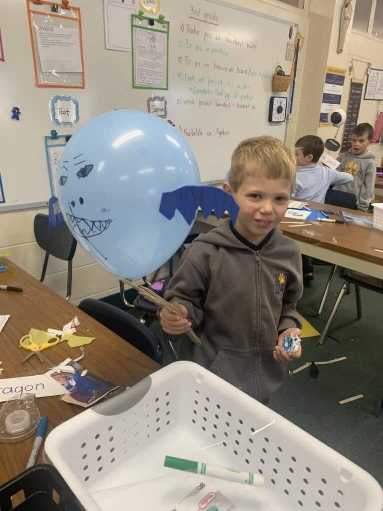At the introduction of the challenge, they read a book called “Balloons Over Broadway,” which gave a history as to how the Macy’s Day Parade came to be and how the balloons were created. They also watched some video clips and looked at pictures of balloons featured previously in the Macy’s Day Parade.