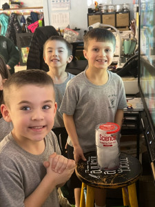St. Helen kindergartners, including (l to r) Brexley Martin, Jensen Jankowski and Liam Gladwell, have been exploring the wonders of weather and snow...