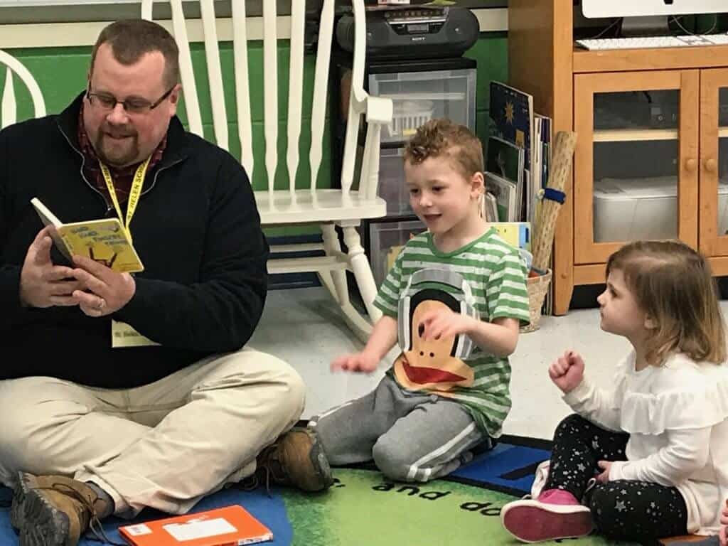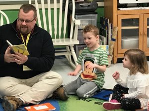 One book, two books, red book, blue book … all this rhyming could only mean one thing – it was Dr. Seuss Week at St. Helen School. The 3-year-old preschool class got a special treat when a guest joined them for story time. Joel Hoar, uncle of Frankie Hoar, read the 3-year-olds some of his favorite Dr. Seuss books. They heard “Hand Hand Fingers Thumb” and even had a special snack following the Dr. Seuss favorite “Green Eggs and Ham.”
