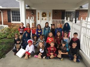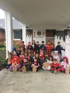 St. Helen students in Mrs. Charmley’s kindergarten class dressed in Halloween costumes went to Holly Hill to share “tricks and treats” with the residents.