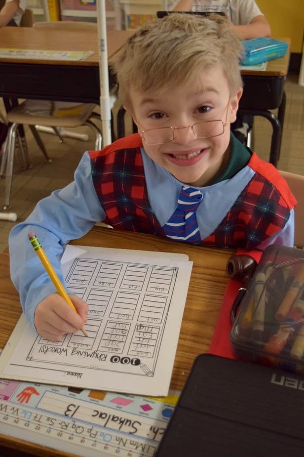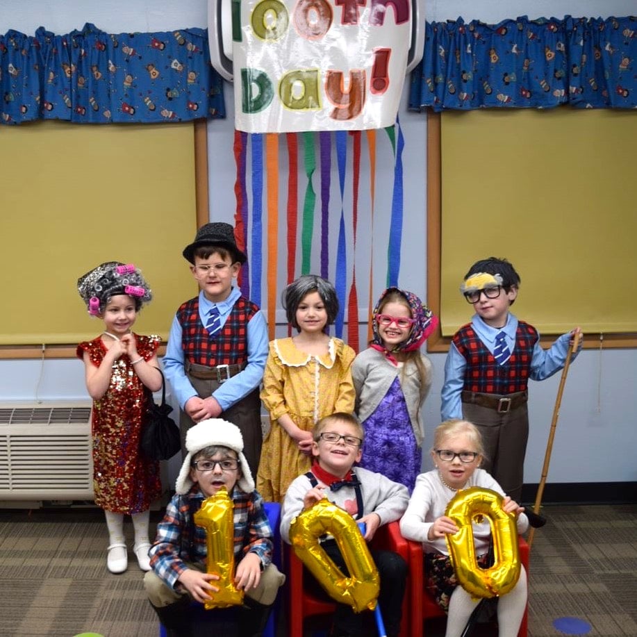 Kindergarteners and first-graders are 100 days smarter. To celebrate their 100th day of school, students “aged” over 95 years to become 100 years old. They arrived dressed as 100-year-old students beaming with wisdom and excitement for the day.