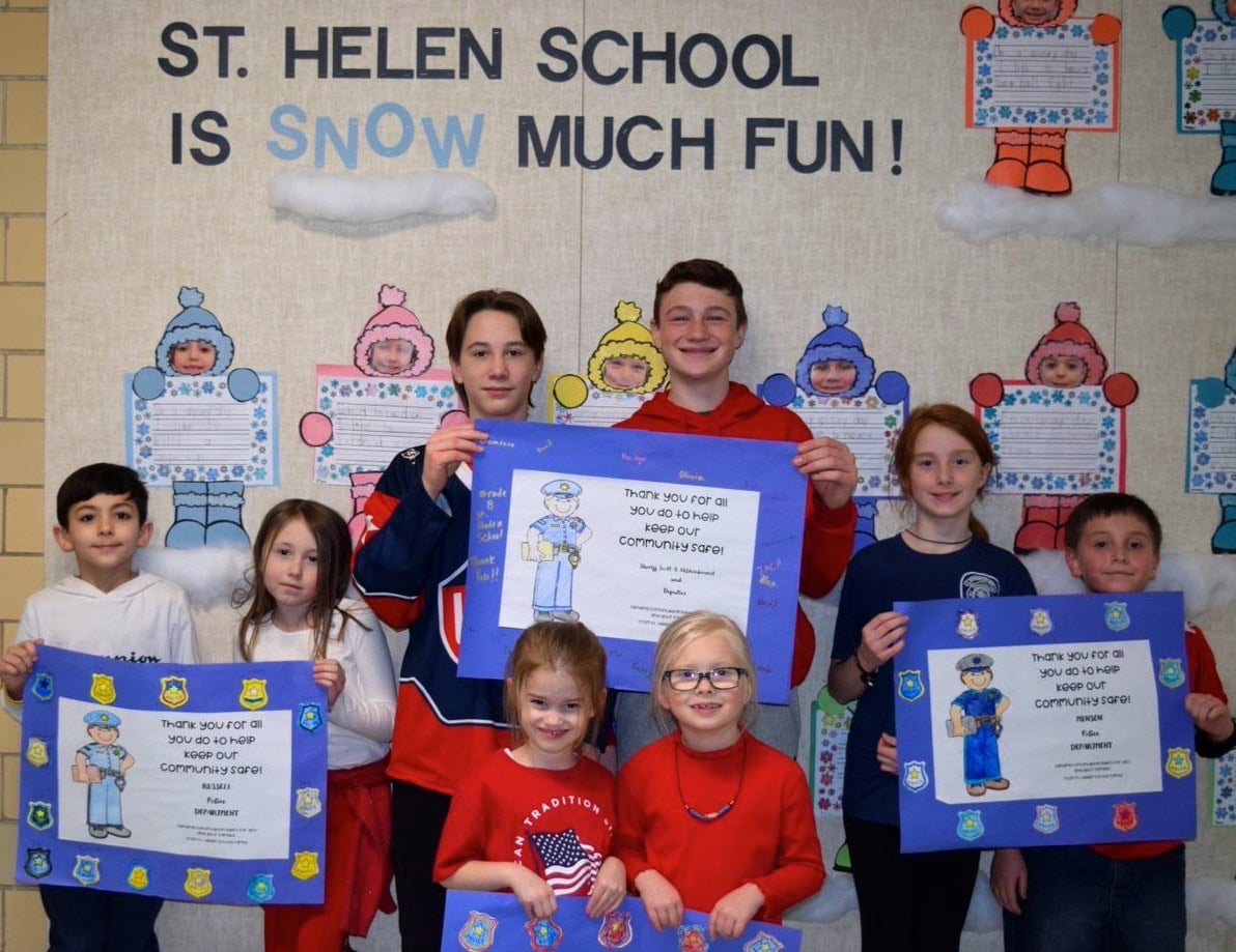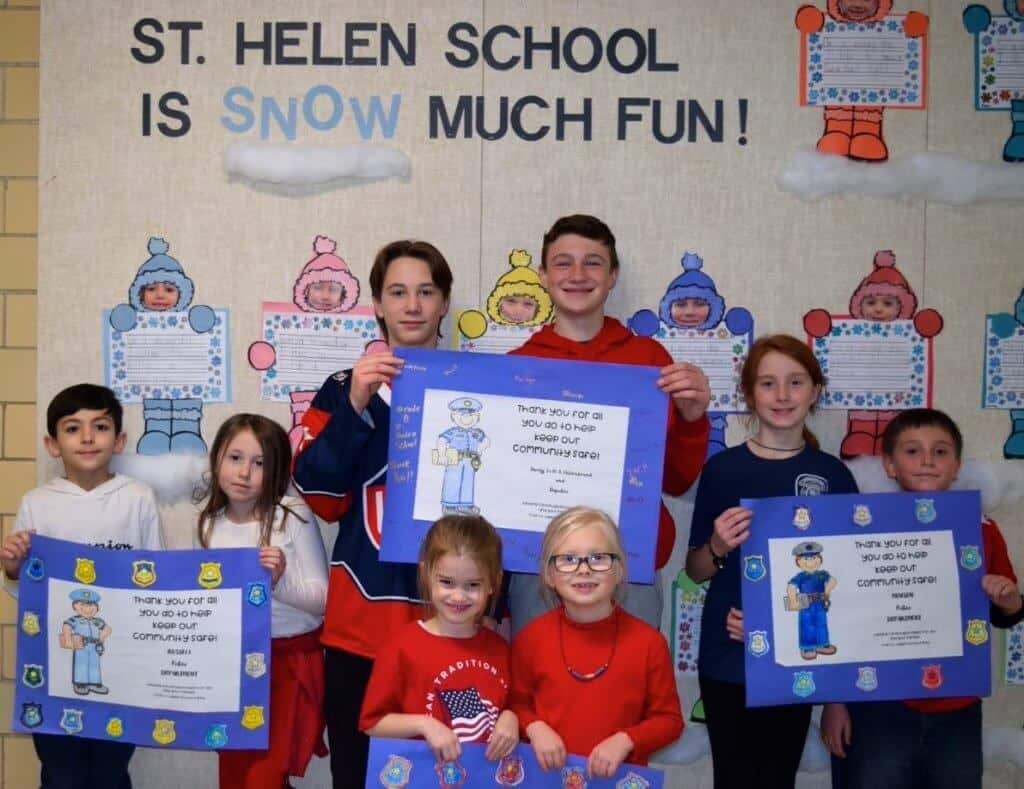 Students and staff at St. Helen School celebrated Catholic Schools Week the first week in February. Students participated in activities that allowed them to have a special and fun week. In addition, they showed their appreciation of Geauga County first responders for the tremendous job they do to keep everyone safe. Students wore red, white and blue and made signs of appreciation that were given to the various fire departments, police departments, University Hospitals Geauga Medical Center and the Geauga County Sheriff’s Department along with a special treat.
