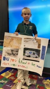 The second-grade students at St. Helen School have been studying how life has changed over time. Each student picked a topic to research and present how it has evolved and changed over time. Some topics students chose included television, buses, computers, plans, ships, mail, houses and space travel.