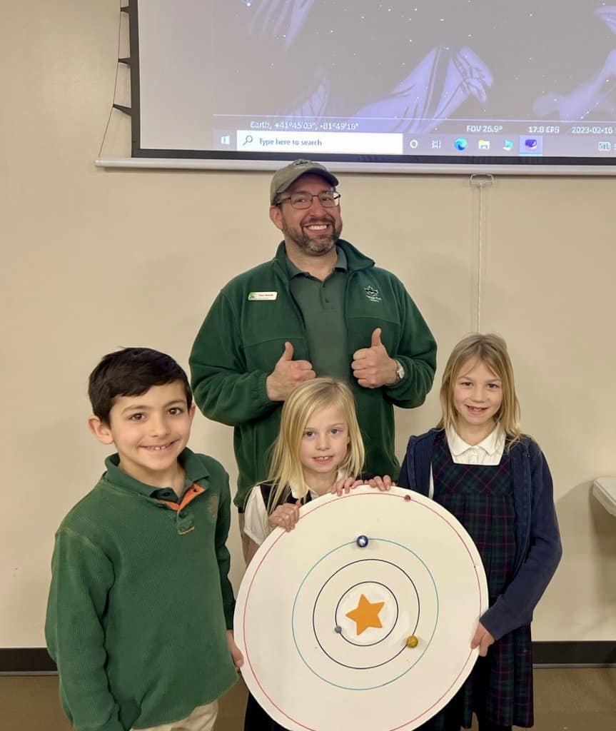 The kindergarten through fourth-grade students at St. Helen School enjoyed a dynamic presentation on constellations. The program was presented by Geauga Park District Naturalist Chris Mentrek.