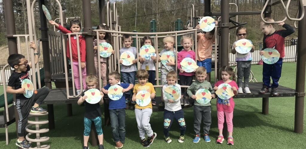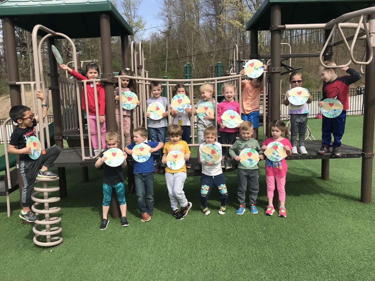 St. Helen Preschool’s Little Hornets class celebrated Earth Day by decorating an earth with their hands and a heart to remind them to take care of God-given Earth...