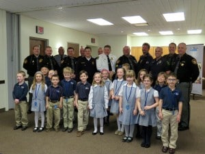 To thank the students for such a special morning, officers invited the first-graders outside to look into a police car, try on some gear and take a special oath before receiving their very own deputy badges. As the first responders went back to work, many were hopeful the Mass would become an annual event.