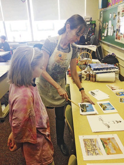 Sheri Lawrence is an artist, illustrator and educator who spent this week visiting with St. Mary School fourth- and fifth-grade classes. Her goal is not only to help students create an inspired painting, but also to expose them to what careers exist in the arts all around them. From graphic design to filmmaking and drama to art therapy, if students are artistically inclined, Sheri emphasized all the different paths a career in art can take.