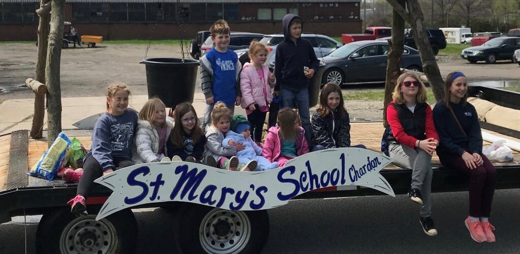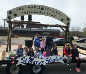 St. Mary’s had several students and families participate in this year’s 90th Maple Festival Parade. The school has been participating in the parade for many years. The McCaskey family has been kind enough to devote hours of preparation and creativity to the project, along with the Eppich, Svaboda, Young and Buzagony families. St. Mary’s float has won first place continuously over the years thanks to their dedication.
